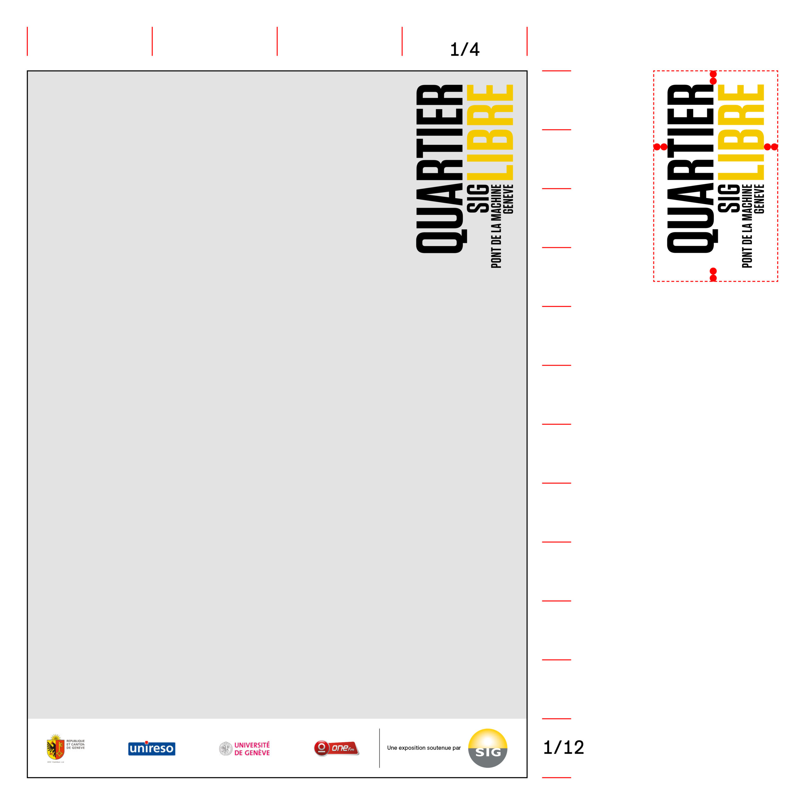 Les logos partenaires, ainsi que la barre verticale, ne doivent pas dépasser la hauteur du logo SIG, ceci afin de ne pas être trop près des bords du bandeau.