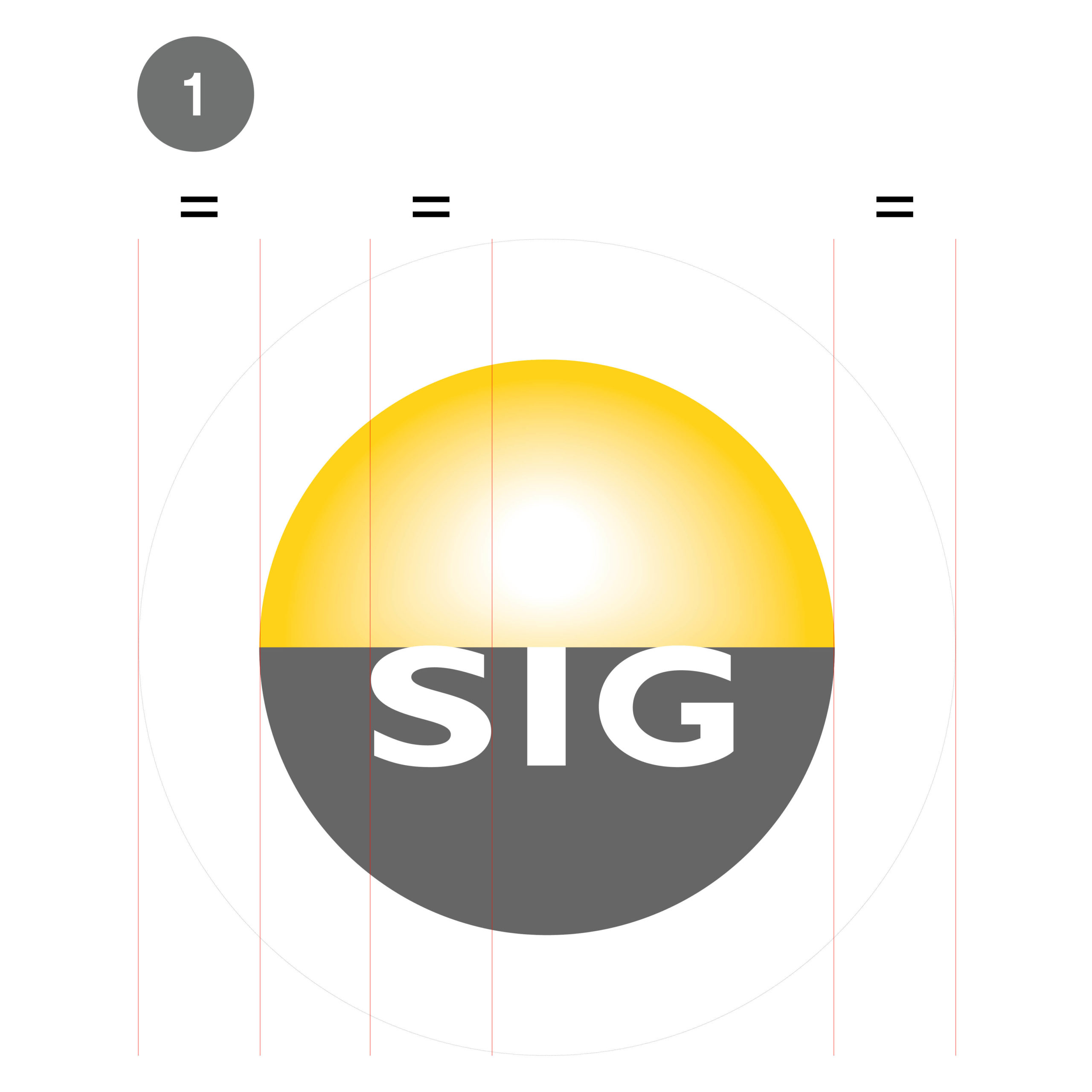 Les lettres SIG, placées sur le haut du demi-cercle inférieure, ont été construites à l’aide de la police Gill Sans Bold.