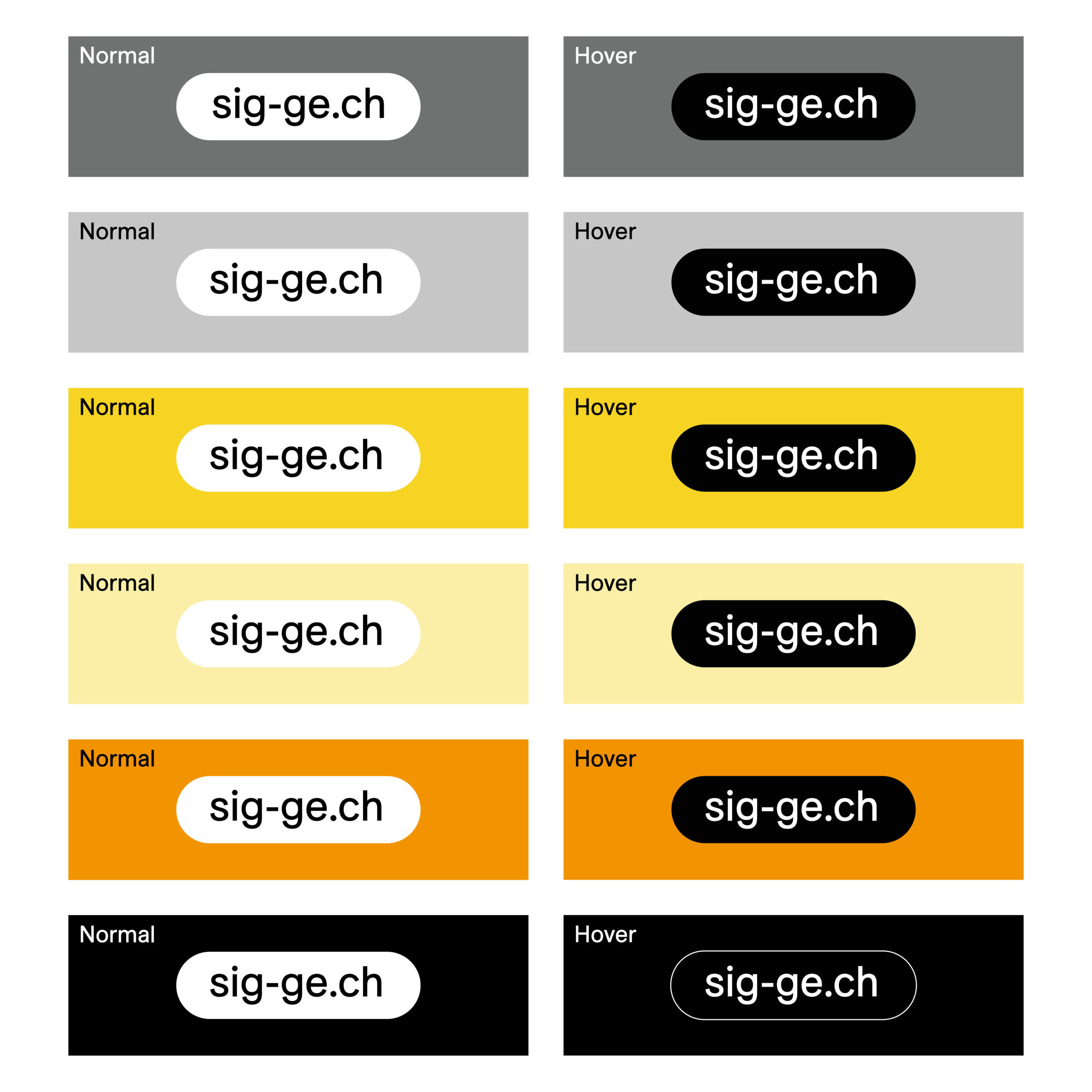 Sur fond blanc, les liens peuvent être en contour ou en plein, en normal ou en hover.